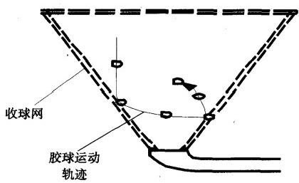 (3)對1號機組收球網進行檢查發現收球網的柵格上卡有部分膠球,膠球在收球網上已變形,卡粘的膠球已使得冷凝器循環水出口壓力上升0.02MPa?此外收球網底部膠球管道也已被膠球完全堵住,這也是1號機組收球率為0的原因。通過與設備廠家的分析,并進行膠球在收球網中的水力模型試驗(見圖1),判斷出由于冷凝器循環水出口壓力偏高(一般冷凝器循環水出口壓力為0.1MPa,而本公司冷凝器循環水出口壓力是0.12MPa),造成膠球在收球網內部因速度過快沖擊收球網柵格而旋轉,不能及時且順利的落入收球網底部,被及時送入收球泵入口,使得膠球回不到裝球室,致使該裝置收球率很低。