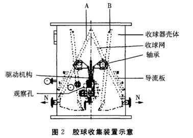 水冷式冷凝器膠球在線自動清洗裝置(見圖1)工作原理為,通過清洗泵將膠球送人列管式冷凝器管程中,循環水壓力大約在0. 4MPa,清洗膠球依靠循環水壓力隨著循環水在冷凝器管內流動,通過膠球與冷凝器管壁間的相互摩擦來清洗掉冷凝器管壁上的沉積物。在冷凝器出口端利用膠球收球器回收膠球,膠球的回收是通過收集裝置的驅動機構來實現的(見圖2),利用驅動機構帶動循環水管道內部收球網形狀的改變,形成正“八”字或者倒“八”字形,以達到收集膠球的目的。然后,再將回收的膠球送至清洗泵,由清洗泵將膠球再次送至循環水人口處,這樣就形成一個清洗循環。我公司采用特殊的清洗泵來實現膠球在線清洗,由于循環過程是自動的、毋需停車,時間間隔短,沉積物在形成初期就被擦掉,使管壁永保潔凈,始終保持冷凝器的換熱效率處于佳狀態,克服由于污垢的產生而引起冷凝器換熱效率的下降,從而降低蒸汽消耗,提高汽輪機的工作效率。