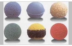 金剛砂膠球:金剛砂膠球分為全金剛砂膠球和半金剛砂膠球兩種。金剛砂膠球適用于清除各種結(jié)垢沉積較多的管道,但對(duì)管子有傷害,一般不長期使用,特別銅管更慎用。有效去除硬質(zhì)結(jié)垢,如:碳酸鈣。適用于鋼管、不銹鋼管換熱器。金剛砂膠球不可連續(xù)在水中長期使用,建議使用兩次后,拿出來放在通風(fēng)處晾干(不可爆嗮) ,涼3-5天時(shí)間,金剛砂膠球的使用壽命會(huì)更長。