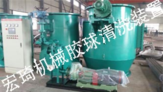 膠球清洗裝置還可以實現自動化運行,主要靠PLC模塊自動化控制,電動二次濾網在進水口配有差壓變送器。當電動二次濾網網面通流面積減少時,達到設計差壓值時,差壓變送器將信號傳送給PLC,PLC模塊指令啟動電動二次濾網傳動機構,同時打開電動排污閥進行排污。當差壓值恢復時,差壓變送器將信號傳送給PLC模塊,PLC模塊指令停止電動二次濾網旋轉,關閉電動排污閥。PLC同時配有時間實施計劃,膠球清洗投用可設置二級時間保護,時間設計范圍可以設置10-999小時自動投用一次。投用時間可設置為15-30分鐘,投用時間設置:PLC指令打開裝球室前置電動球閥,同時將信號傳送給膠球輸送泵,啟動膠球輸送泵。同時打開循環水進水管道上電動投球閥,當正常運行后PLC指令打開裝球室出口電動球閥,循環水管道回水管道上裝有收球閥,PLC設置時間清洗為15-30分鐘后。PLC指令關閉裝球室的電動閥門,PLC再指令關閉電動投球閥門,再指令關閉收球電動閥門、其次PLC指令停止膠球泵。