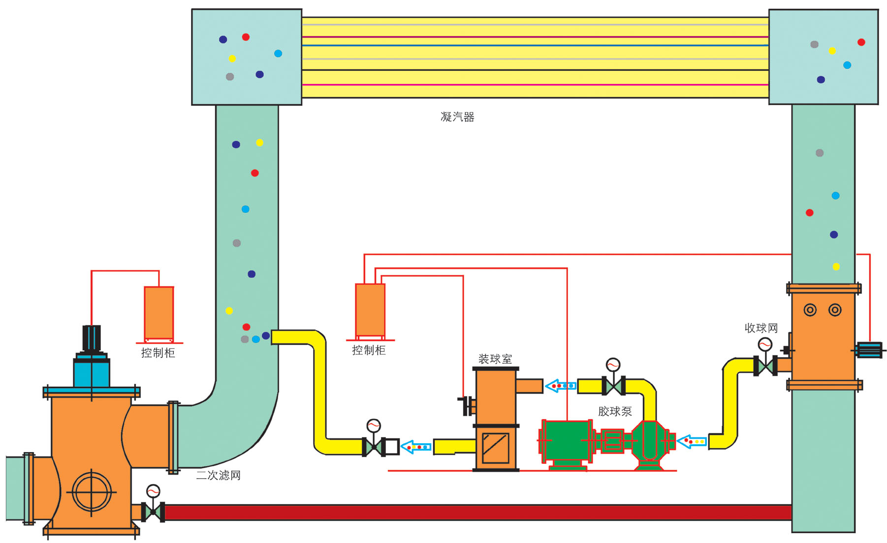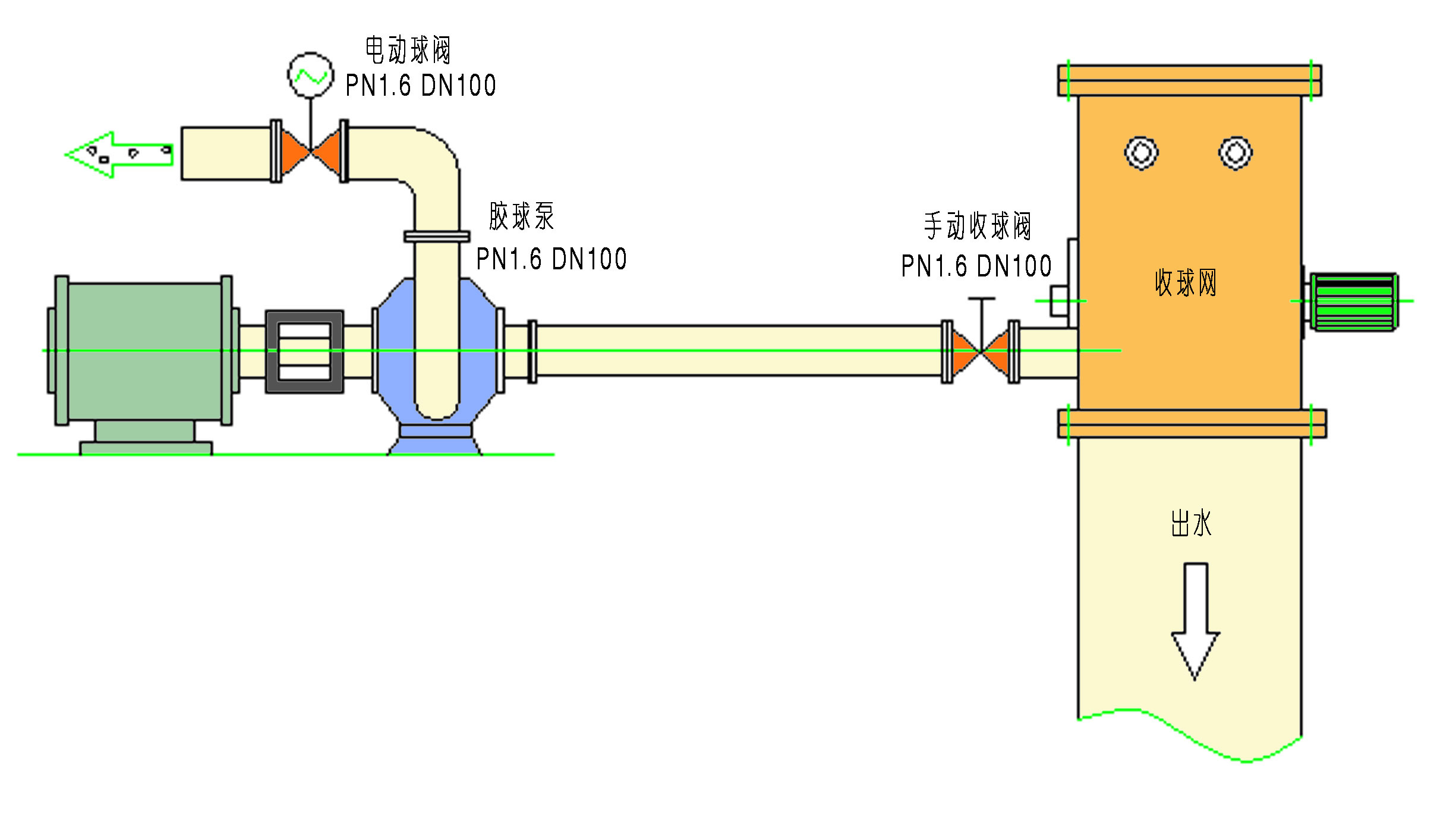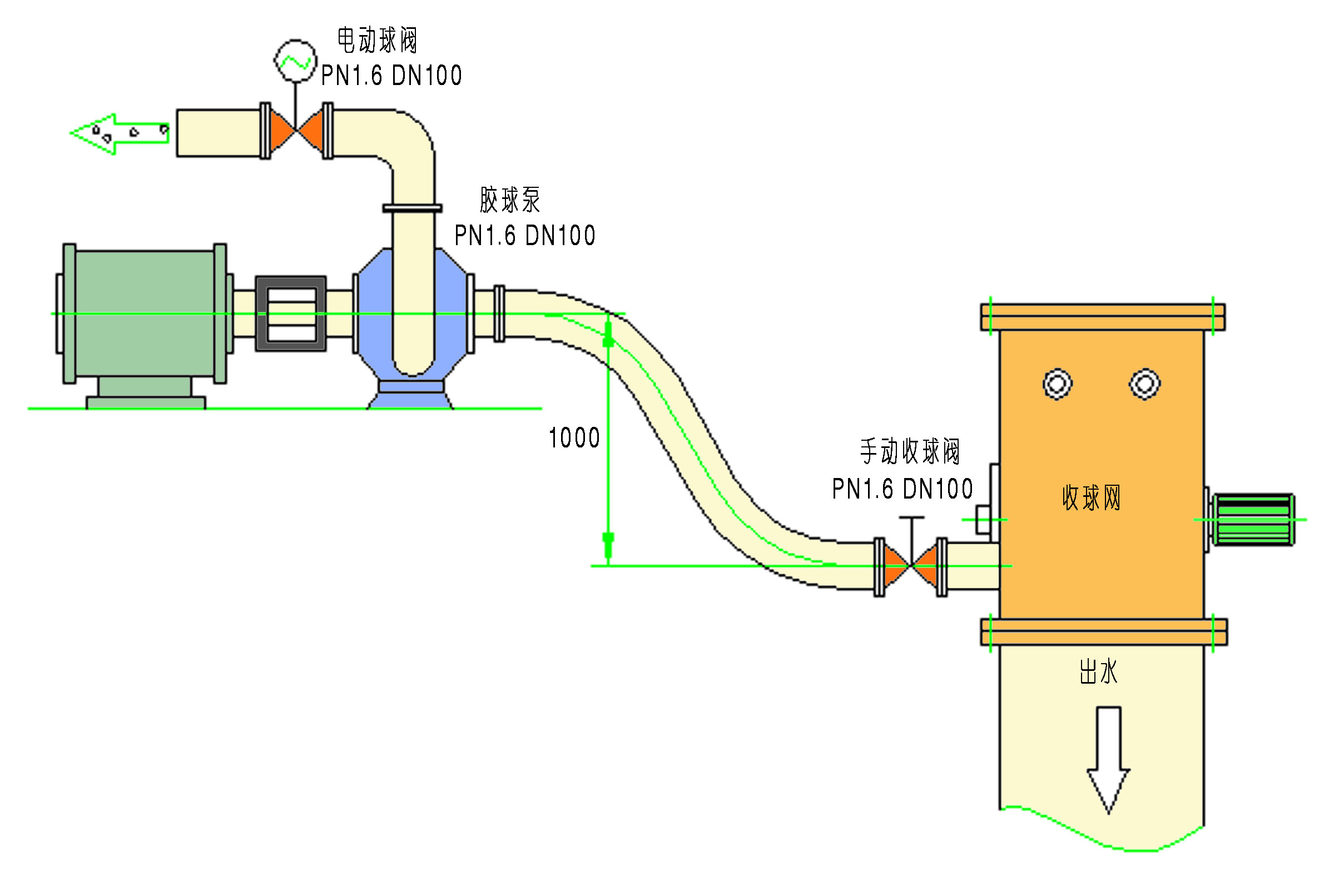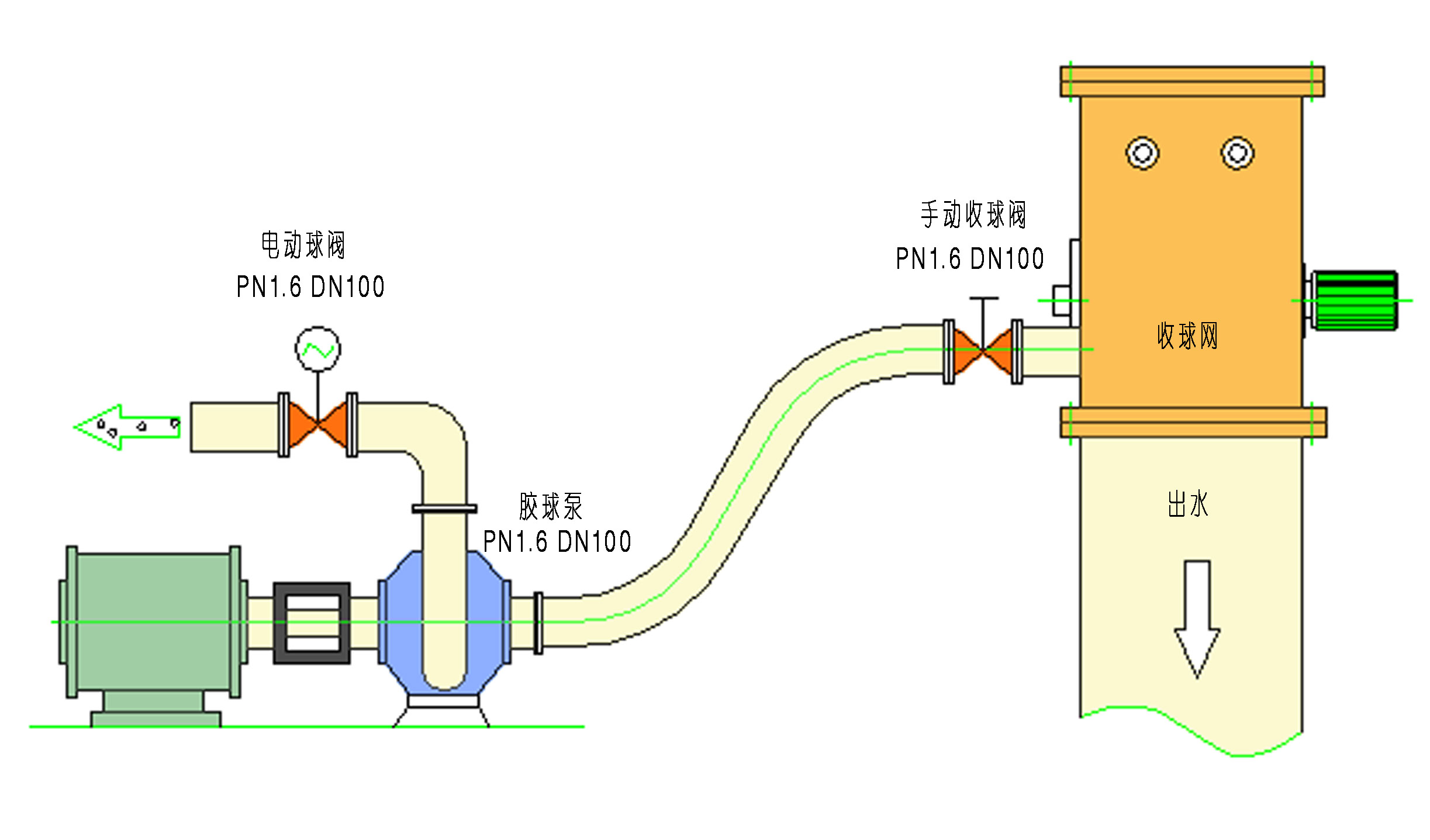 在膠球清洗系統投入使用以前,*先關閉收球網,收球網沒有關到位則膠球泵不能啟動,只有在收球網關到位之后膠球泵才能啟動;在啟動膠球泵之后,隨時都可根據用戶需要關閉膠球泵;在關閉膠球泵之后才能打開收球網,使之開到位后停止。