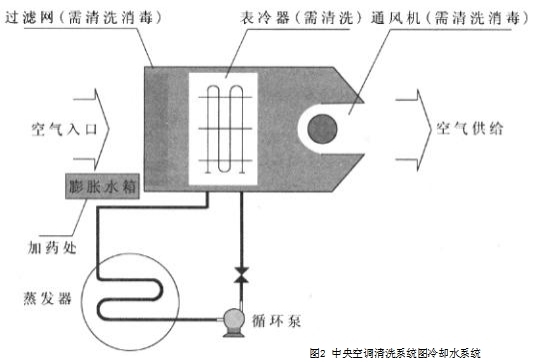 空氣調(diào)節(jié)系統(tǒng)是不容忽視的關(guān)鍵部位見(jiàn)圖245冷凝器系統(tǒng)的清洗范圍冷凝器系統(tǒng)的清洗范圍包括冷卻水系統(tǒng)冷凝器冷卻塔及相關(guān)水管道冷凍水系統(tǒng)蒸發(fā)器風(fēng)機(jī)盤(pán)管/表冷器水側(cè)及相關(guān)管道循環(huán)風(fēng)系統(tǒng)過(guò)濾器風(fēng)機(jī)盤(pán)管/表冷器風(fēng)側(cè)。