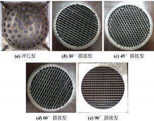 參照某電廠凝汽器循環(huán)水系統(tǒng)建立了原比例物理模型其中包括冷卻水管道部分、二次濾網部分、凝汽器、循環(huán)冷卻水進出口水室、回水室及換熱管部分而二次濾網部分包含傳統(tǒng)沖孔型二次濾網及開孔率相同但網條搭接角度不同的4種二次濾網計算用物理模型及網格劃分如圖1所示其中濾網部分的網條及其不同角度的搭接方式如圖2所示